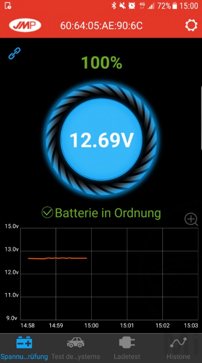 • With the JMP Skan Monitor 2 and the new and free Apple or Android app "JMP BatteryMonitor II" you are able to check the state of charge of your battery quickly and easily.