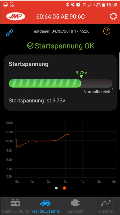 • In addition, the new app can also be used to check starting processes (starter motor, cable connections, etc.) and charging processes (alternator, cables, etc.) in detail.