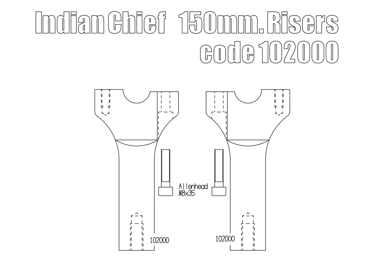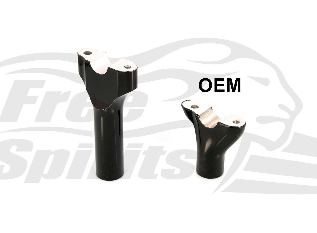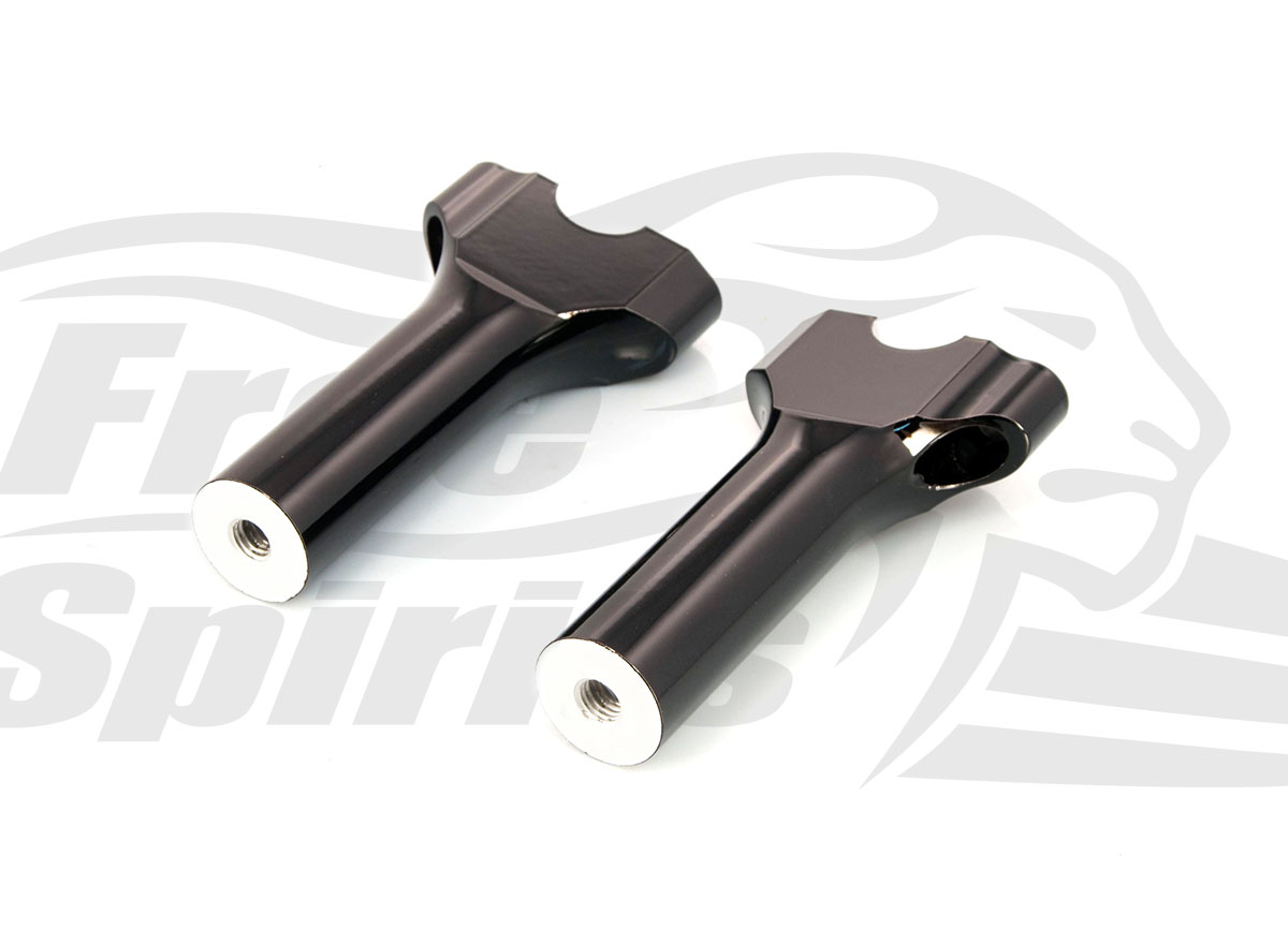 Billet alluminium risers, available black coated, 150mm / 6 inch rise. Takes 1″ diameter handlebar. Suitable for: