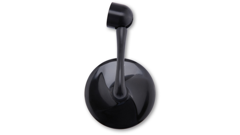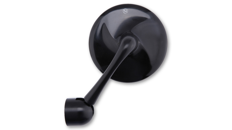 Elegant, CNC-machined handlebar end mirror with a round head made of high-quality aluminum. The stylized propeller on the back of the mirror head emphasizes the extraordinary design of this model. Thanks to an innovative universal clamping system, the mirrors fit handlebars with an inner diameter of 12 to 22 mm.