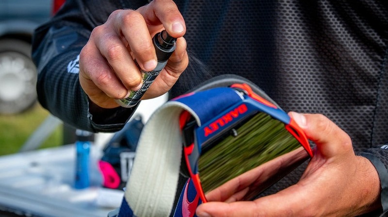 • Step 1 - Spray Visor, Lens & Goggle Cleaner onto the surface