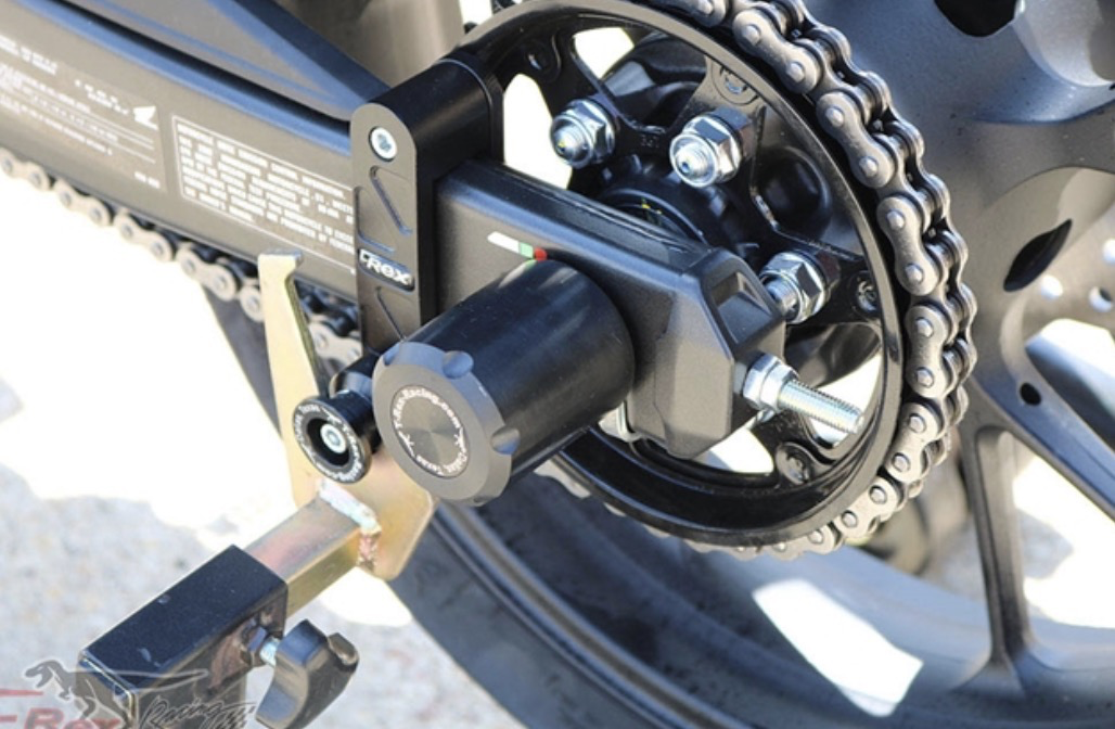 This is a set of frame sliders, rear axle sliders, exhaust sliders, engine case covers, spool adapters, and fender eliminator for the above bike model.