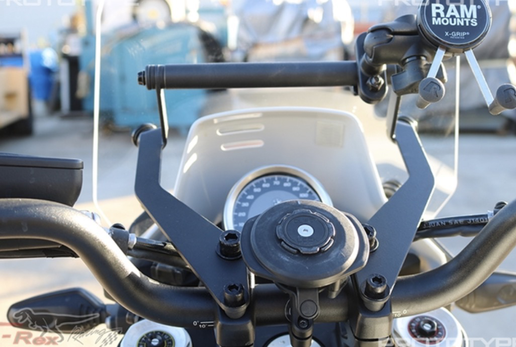 Includes crossbar (7/8 Diameter) to allow mounting of phone, gps, cameras, etc
