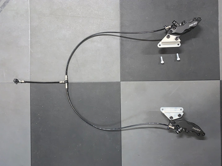 * Custom-made central T-shaped brake line with banjo bolts and banjo washer.