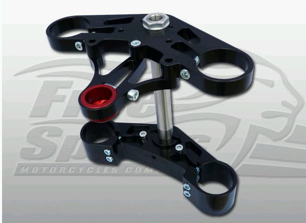 | | | XR 1200 Triple Clamps , black | €563,62 Add to cart | | This kit offers replacement top and bottom triple clamps in lightweight CNC machined billet aluminium. The fork offset is 0 degrees, 1.5 more than stock version, therefore handling will stable (this is to partially compensate the raised tail with suspension risers fitted).