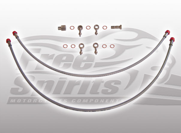 | | | XR1200 front braided brake line kit | €146,25 Add to cart | | This braided brake line kit replaces the original rubber brake hoses. The result is an immediate and noticeable improvement in feel, power and confidence in the front brakes. Kit complete and ready to mount.