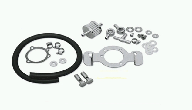 Features an integrated thermostate, which is always recommended when installing an oil cooler. Clean and easy way to integrate this function. For all Tube frame Buell models and XL Sportstermodels with front-mounted spin-on oil filters.( 1994 - up )