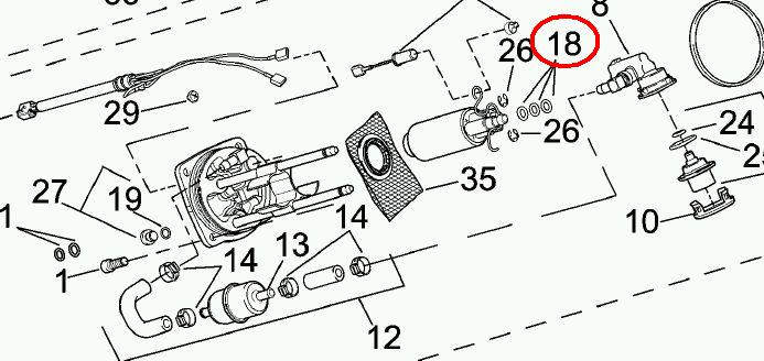 remove the 3 o-rings and the nylon spacer from the fuel pump outlet, and push the new seal rubber on, as a li... | |