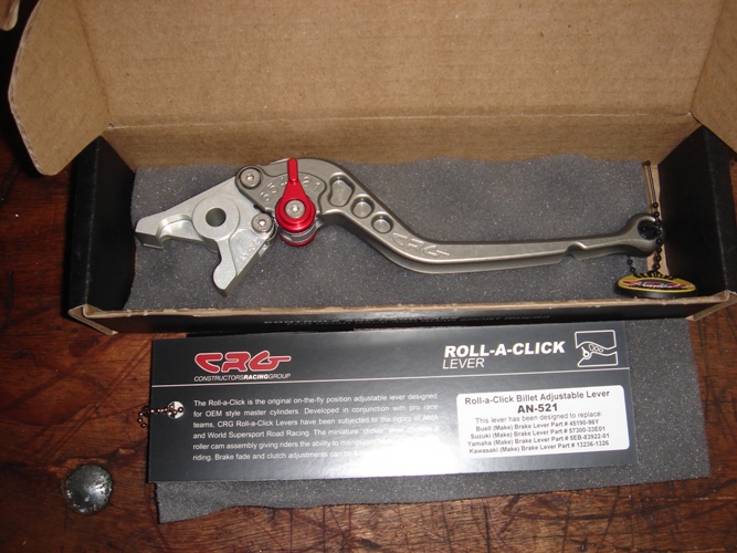 | | | CRG XB brake lever long, grey , red tab | On request | | Beschikbaar in Goud en grijs, geannodiseerd. Leverbaar in de standaard lengte of kort model. (2 of 3 vinger gebruik) Past op alle Buell XB modellen.