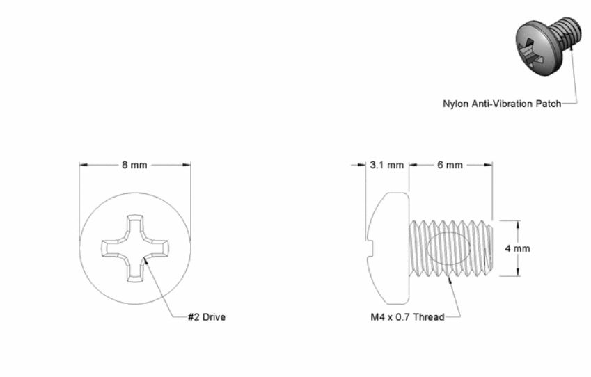 | | | Thread-Locking Pan Head Phillips Screws m4 | €0,95 Add to cart | | Thread-Locking Pan Head Phillips Screws m4 x 6 mm