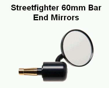 | | | Streetfighter 60 mm bar end mirror black 7/8 | €79,00 Add to cart | | Streetfighter 60 mm diameter bar end mirror Black for 7/8 " ( 22 mm ) handle bar
