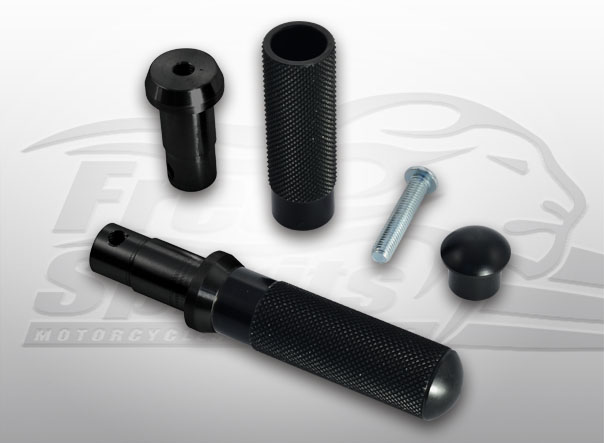 CNC machined racing footpegs, offer excellent grip and durability with a weight loss of 676 gr compared to the original (from 936 gr to 260 gr).“Bolt in kit” made to replace existing footpegs.
