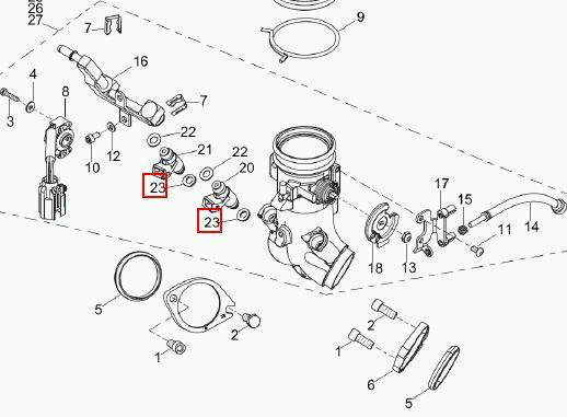 Buell XB9 2003 and BuellX1 and S3 with injectionO-ring injector outlet