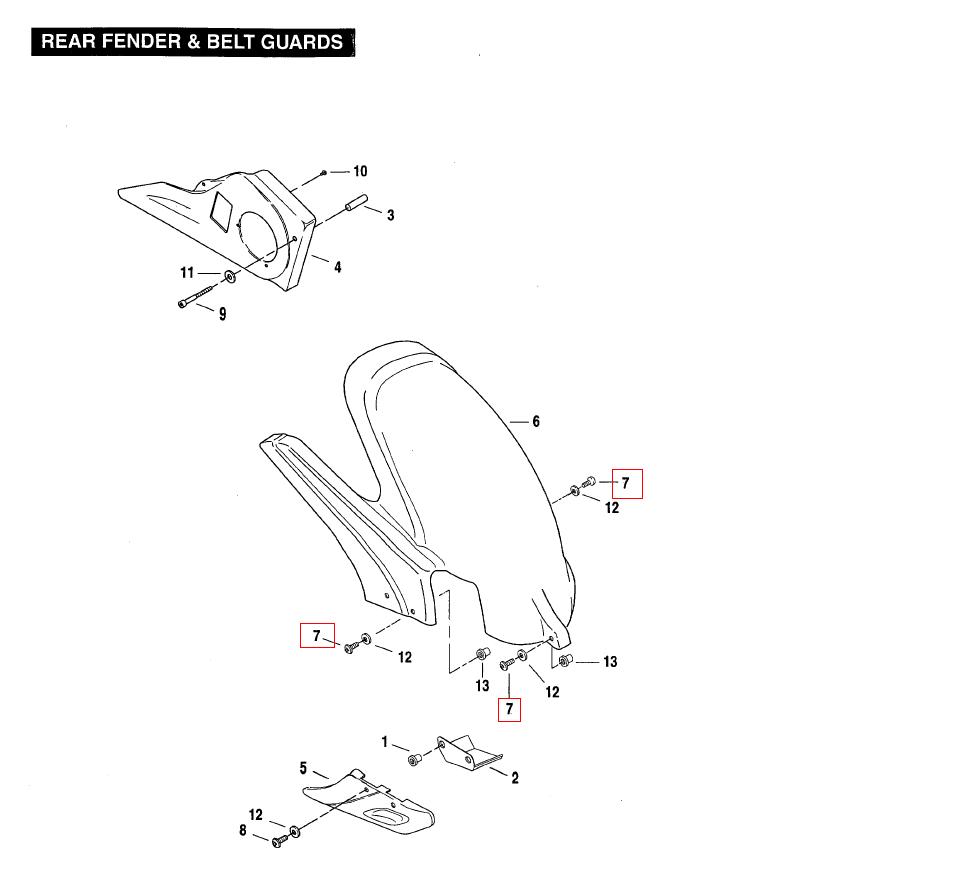 REAR FENDER & BELT GUARDS, Screw, 1/4-20 X 3/4 truss torx. Sold per piece.
