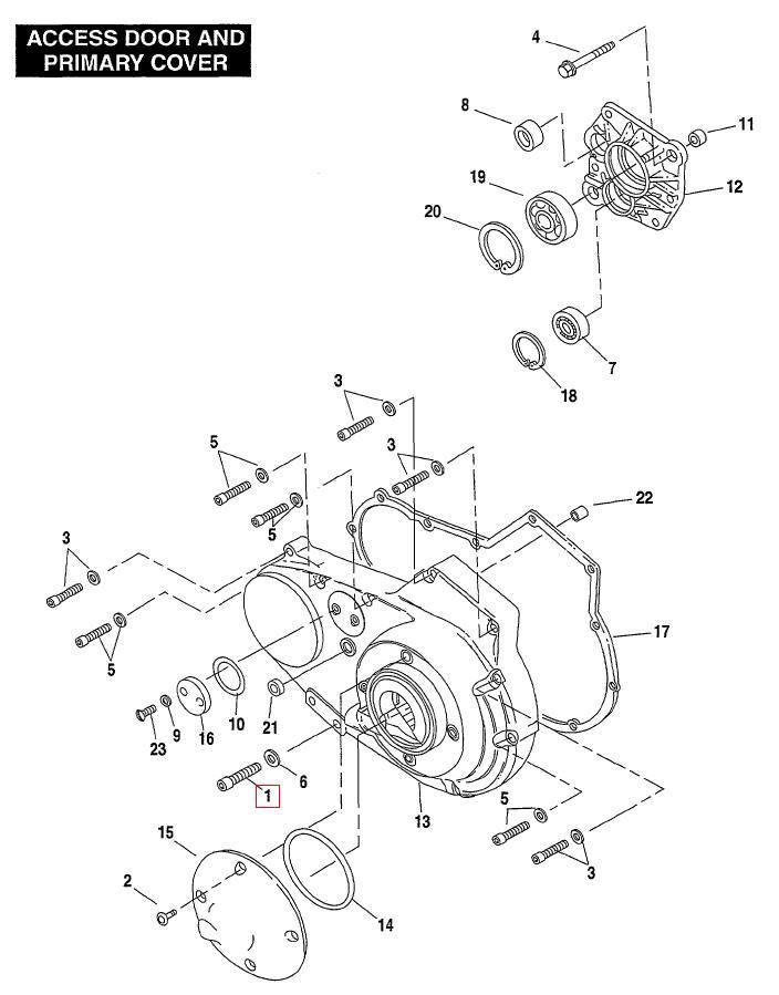 | | | Screw, 5/16-18 X 3 hex. Socket hd. w/cam grip zinc | On request | | Acces door and primary cover Screw, 5/16-18 X 3 hex. Socket hd. w/cam grip, zinc. Sold per piece, 1 needed.