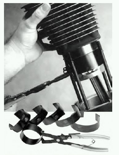 | | | Piston ring compressor tool | €142,00 Add to cart | | Jims Piston ring compressor set, supplied with 6 bands ranging from 2-7/8” to4-3/8”.