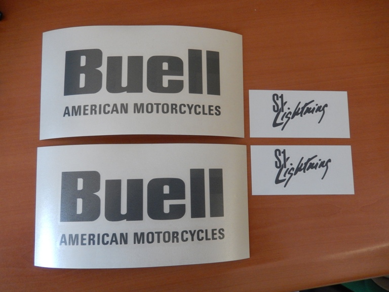 | | | Buell S1 Lightning decal set grey | €68,00 Add to cart | | Twin Motorcycles Buell S1 grey flyscreen and tail and fuel tank decall grey sold as a set. 2 tank decals and 2 front and rear stickers. OEM dimensions.