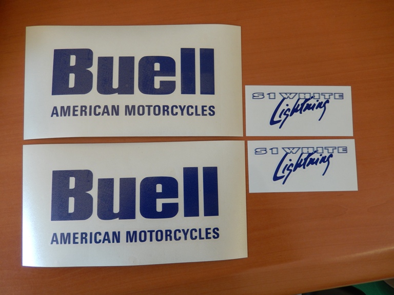 | | | Buell S1 White Lighting BLUE decal set | €79,00 Add to cart | | Twin Motorcycles Buell S1 WL Blue flyscreen and tail and fuel tank decall Blue sold as a set. 2 tank decals and 2 front and rear stickers. OEM dimensions.