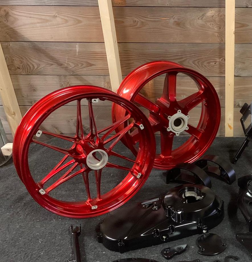 | | | Powder coating XB wheels SET translucent | €347,10 Add to cart | | Powder coating any set of Buell XB 9/12wheelsintranslucent red ( cherry bomb ) or translucent Amber