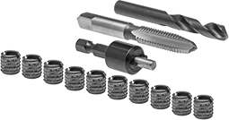 comes with 10 inserts, dril, tap and insert tool