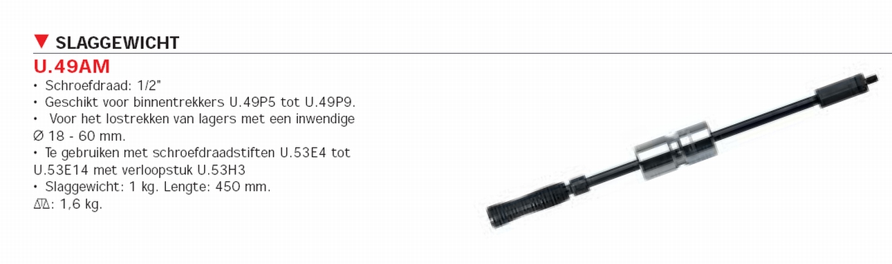 | | | Facom, Slide Hammer | €76,90 Add to cart | | Facom Slide Hammer, 1 kilo weight slide hammer, lenght 450 mm 1/2' connecting treath for use with Blind bearing pullers; U.49P5, U.49P6, U.49P7, U.49P8, U.49P9. | |