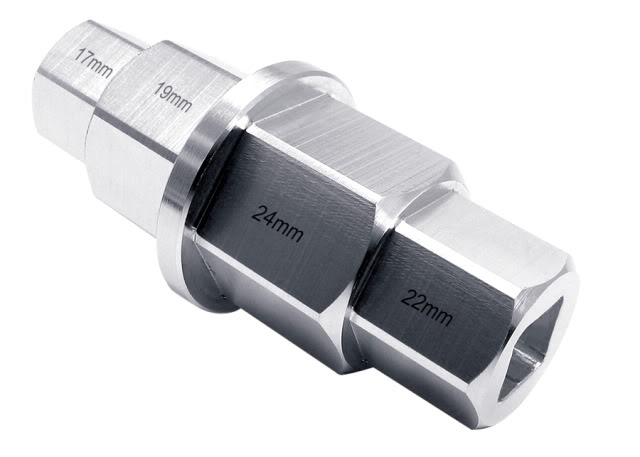 Buell XB9/12 2003-2010 and all Buell 1125R and 1125CR model 2009-2010 Front and Rear axle tool fit's all models from 2003-2010. Light weight Axle tool, Four metric hex sizes: 17, 19, 22 and 24mm 3/8 in. square drive on both ends (rated for maximum 90 ft lbs torque) Made from billet 7075 T-6 aluminum - weights only...