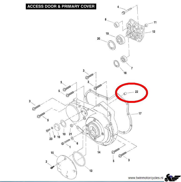 The counter shaft is made from case hardened steel by Twin Motorcycles