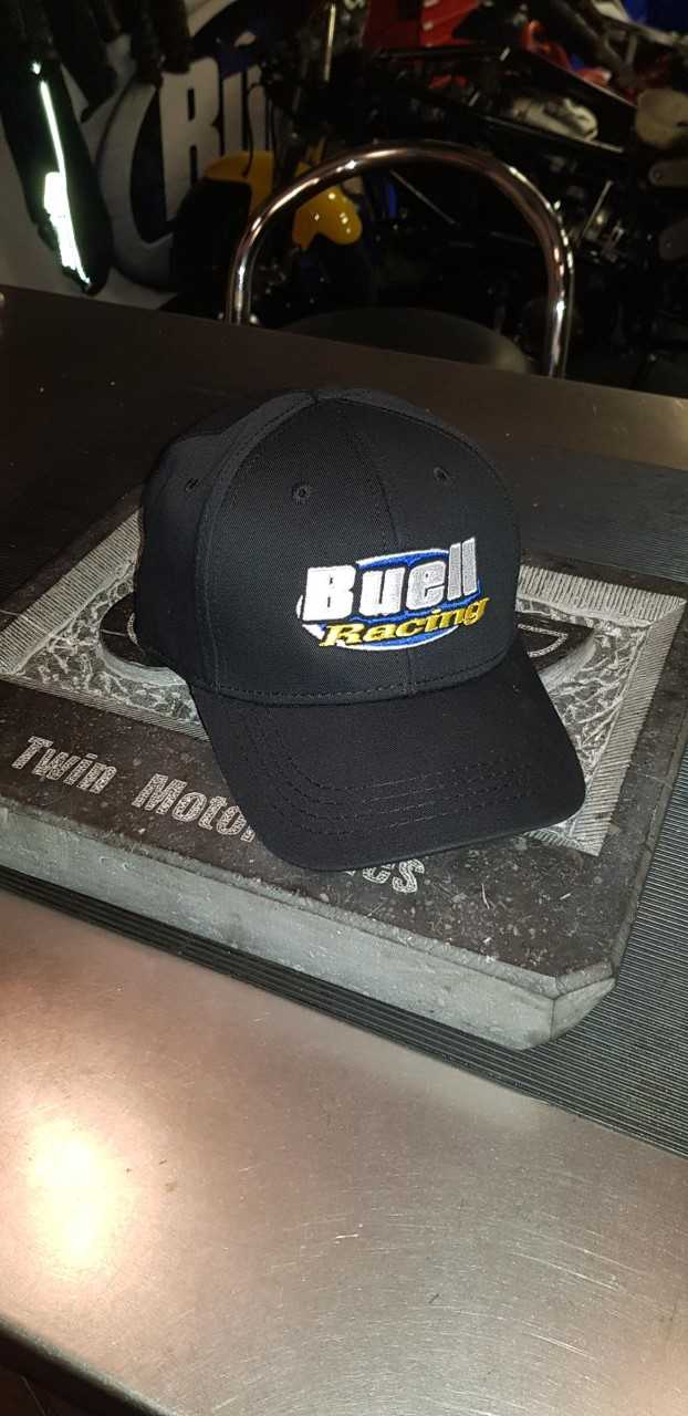 Buell adjustable Racing cap.one size fits all,100% high quality black cotton. Embroidered Buell Racing logo.