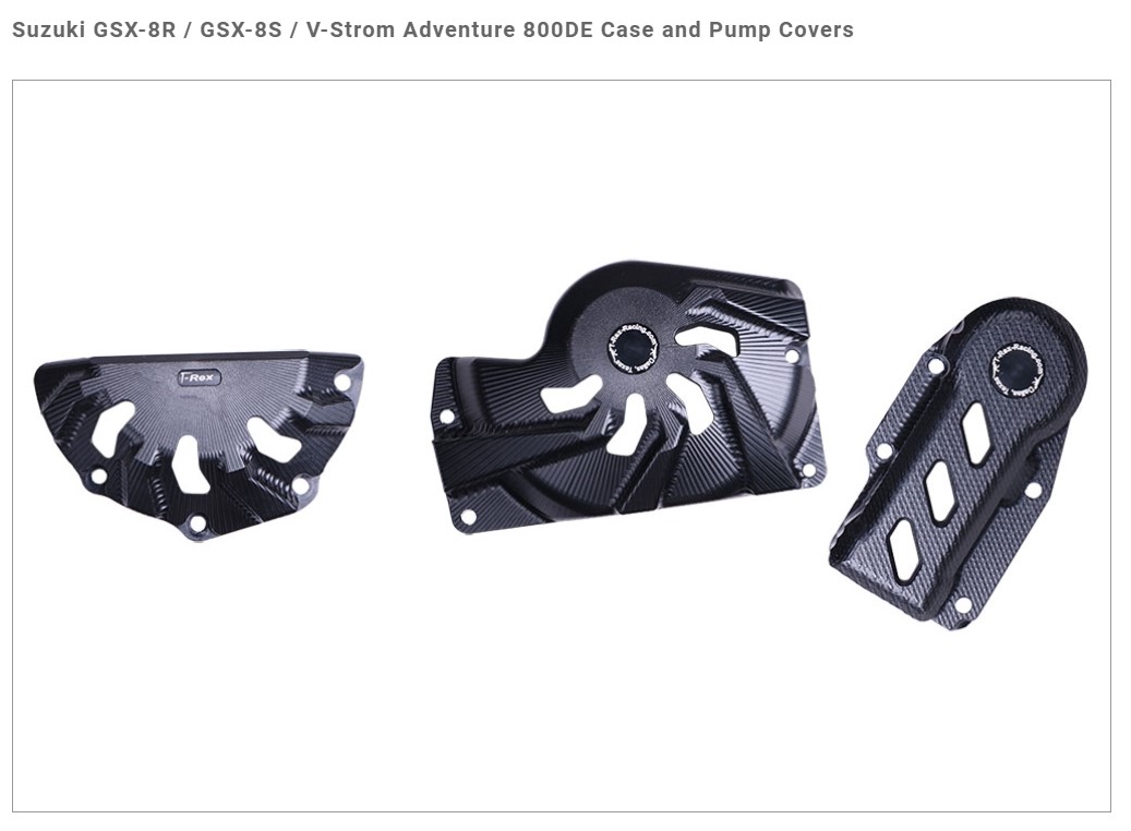 | | | Suzuki GSX-8R/8S /V-Strom Adventure pump covers | €164,93 Add to cart | | Suzuki GSX-8R / GSX-8S / V-Strom Adventure 800DE Case and Pump Covers