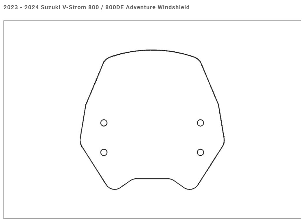 | | | Suzuki V-Strom 800 / 800DE Adventure Windscreen | €181,95 Add to cart | | 2023 - 2024 Suzuki V-Strom 800 / 800DE Adventure Windshield