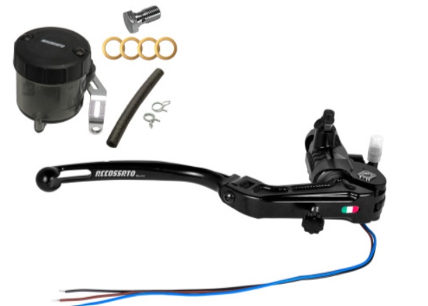 Supplied withsilverlever, reservoir, handlebar clamp and brake contact