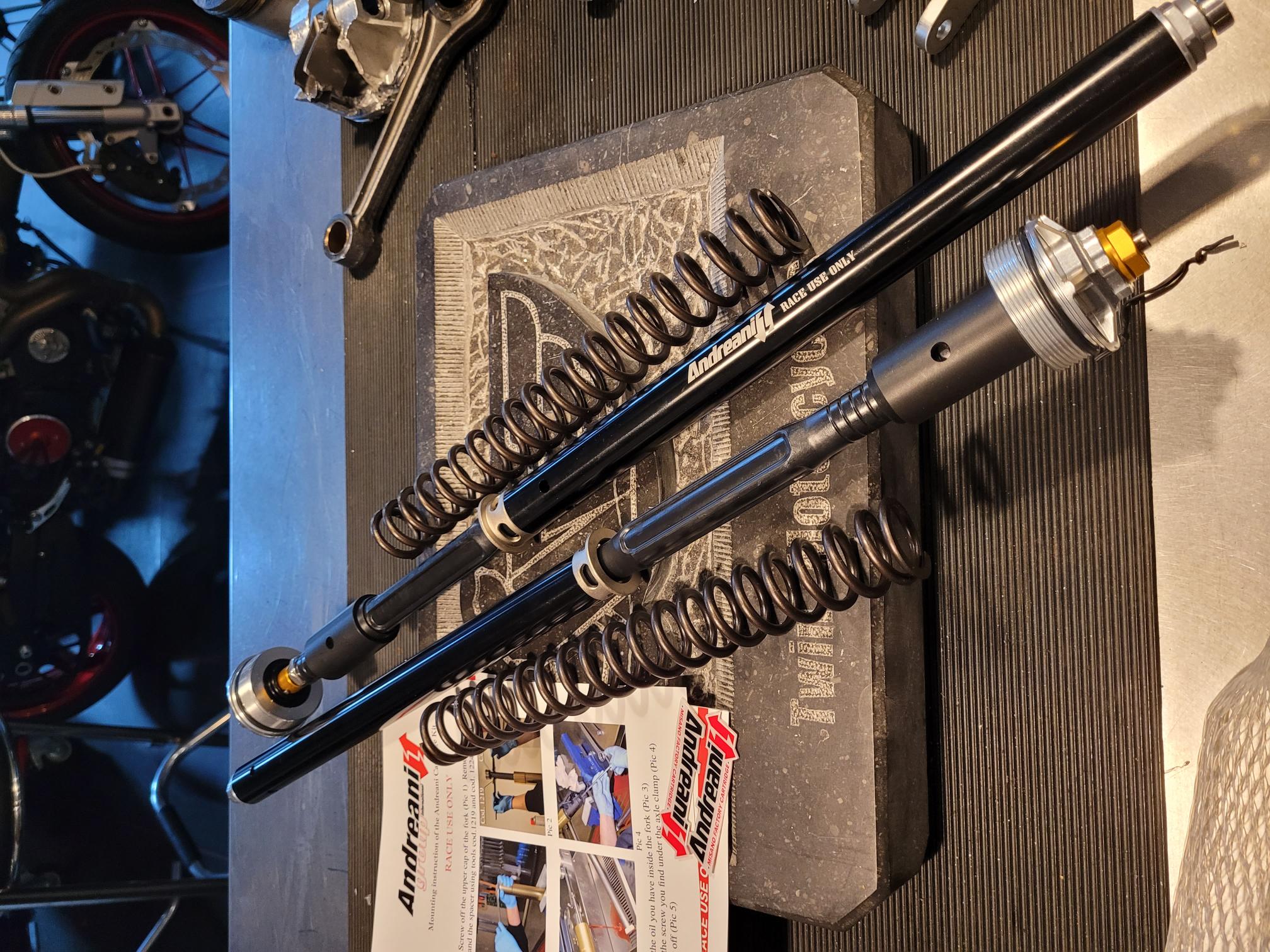 Cartridge kit for OEM fork with hydraulic adjustments, developed by Andreani Group and equipped with a sophisticated hydraulic system... | |