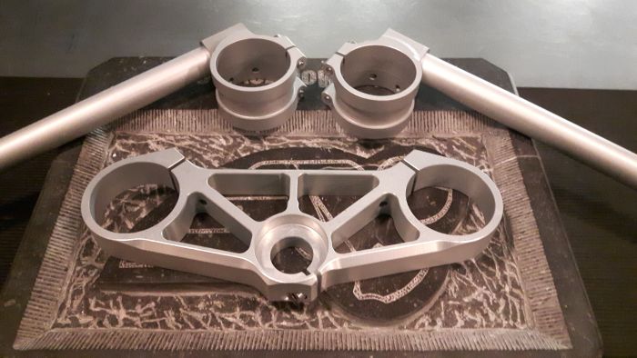 billet aluminium CNC machined top triple tree to fit all Buell X1 / S1 models. ( showa or WP suspension ) This triple tree kit includes new clip on handlebars. These are also lighter and stronger than the stock cast items. Anodised only silver.