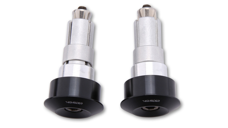 HIGHSIDER pro Curve Handlebar Ends Black (Pair) Bar End Weights made of chrome-plated or black aluminium with chrome-plated or black central screw. Universal fit for handlebars withInner diameter from 12 to 22 mm – therefore for most 7/8 inch and 1 inch aluminium or steel handlebars. All hanging bar end mirrors of ...