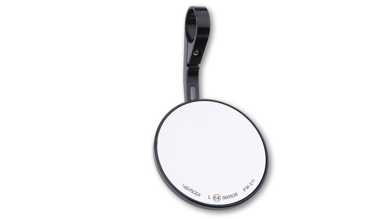 HIGHSIDER pro Bar End Mirror Classic Black (1pc) HIGHSIDER pro CLASSIC handlebar end mirror, E-approved. Elegant, CNC-machined handlebar end mirror with a round head made of high-quality aluminum. The stylized propeller on the back of the mirror head emphasizes the extraordinary design of this model. Thanks to an inno...