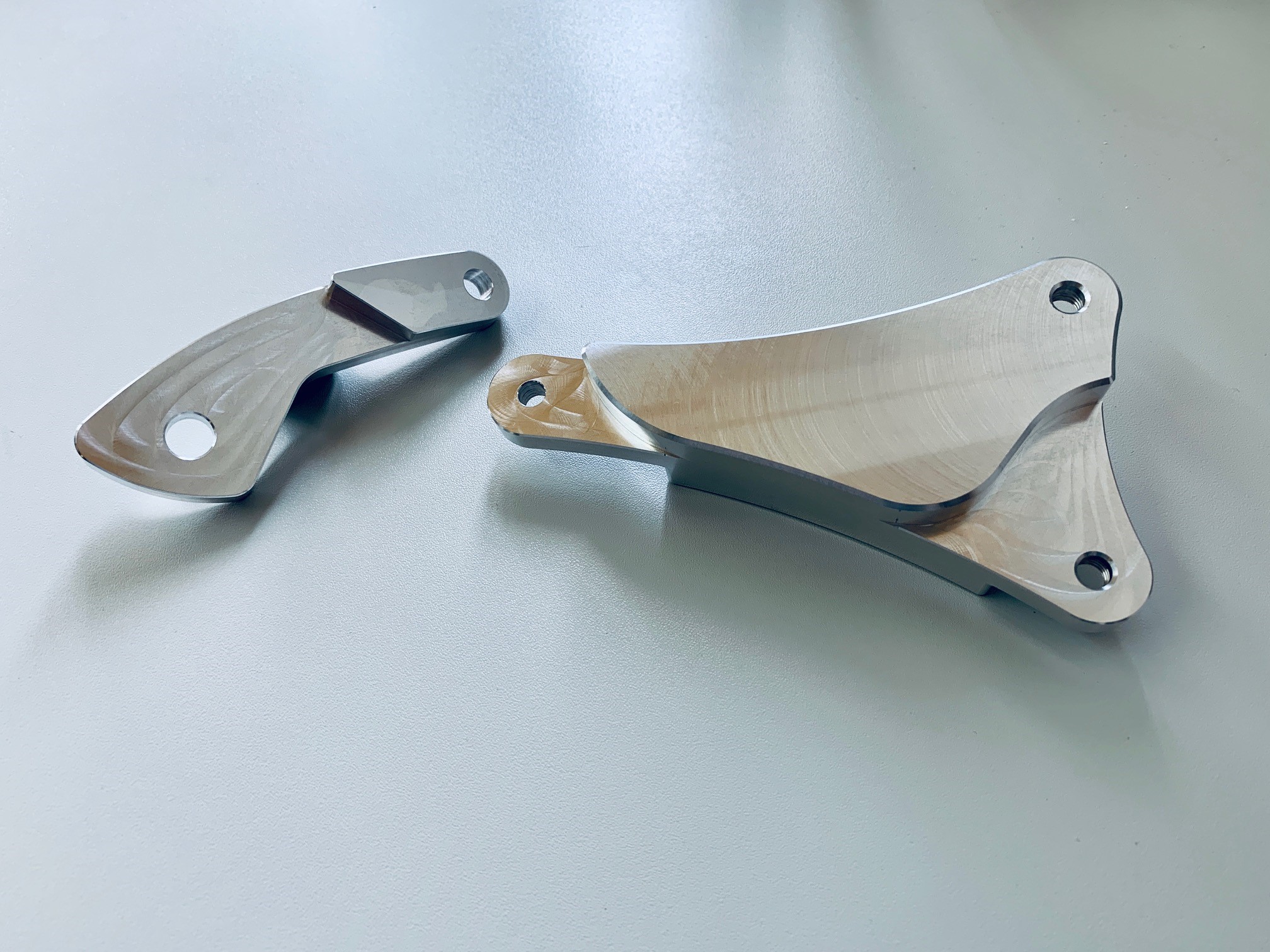 These CNC machined adapters from MSB Team make it easier to convert the Buell 1125 models to the XB-S rear struts.