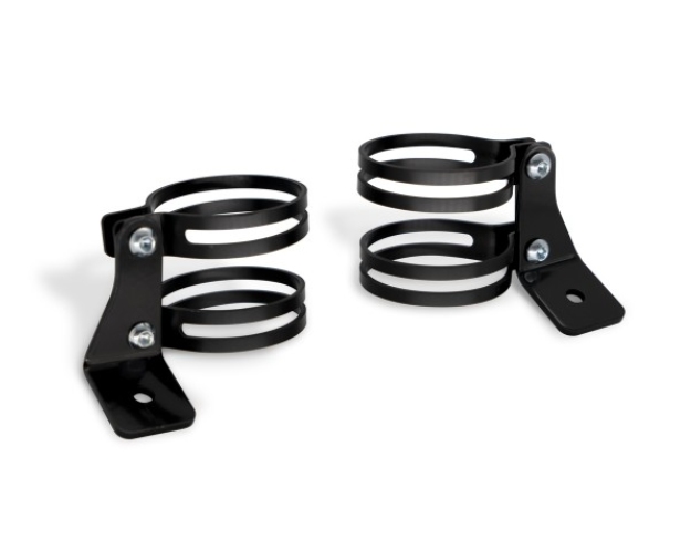 The HEADLIGHT BRACKET KIT TUBOLAR for additional spotlights is made of aluminum in black color.