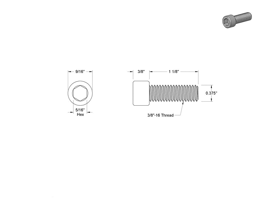 Frame and Engine Mounts Screw, 3/8-16 X 1-1/8 socket hd. (grade 8). Sold per piece.